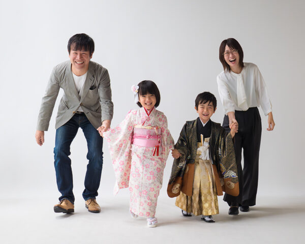 双子のご兄妹の七五三記念を撮らせてもらいました。仲良く手をつなぎ、「よーいどん!」の合図で駆け出す姿が、元気あふれる楽しい一枚になりましたね。ご家族写真は、フォーマルでもカジュアルでも、そのご家庭らしさが感じられる瞬間を、大切に撮りたいと思っています。「ちゃんとした素敵な写真」を未来に残してくださいね。